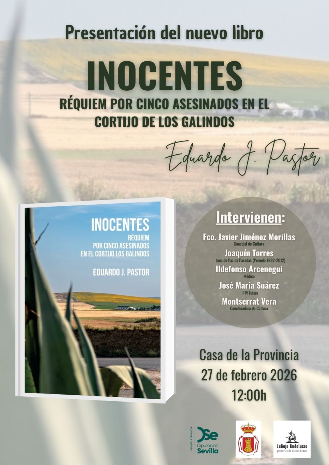 La Casa de la Provincia de Sevilla acogerá el próximo viernes 27 de febrero a las 12 de la mañana, la presentación del libro "Inocentes. Réquiem por cinco asesinados en el Cortijo de los Galindos" del escritor paradeño Eduardo J. Pastor (editado por LaBaja Andalucía).