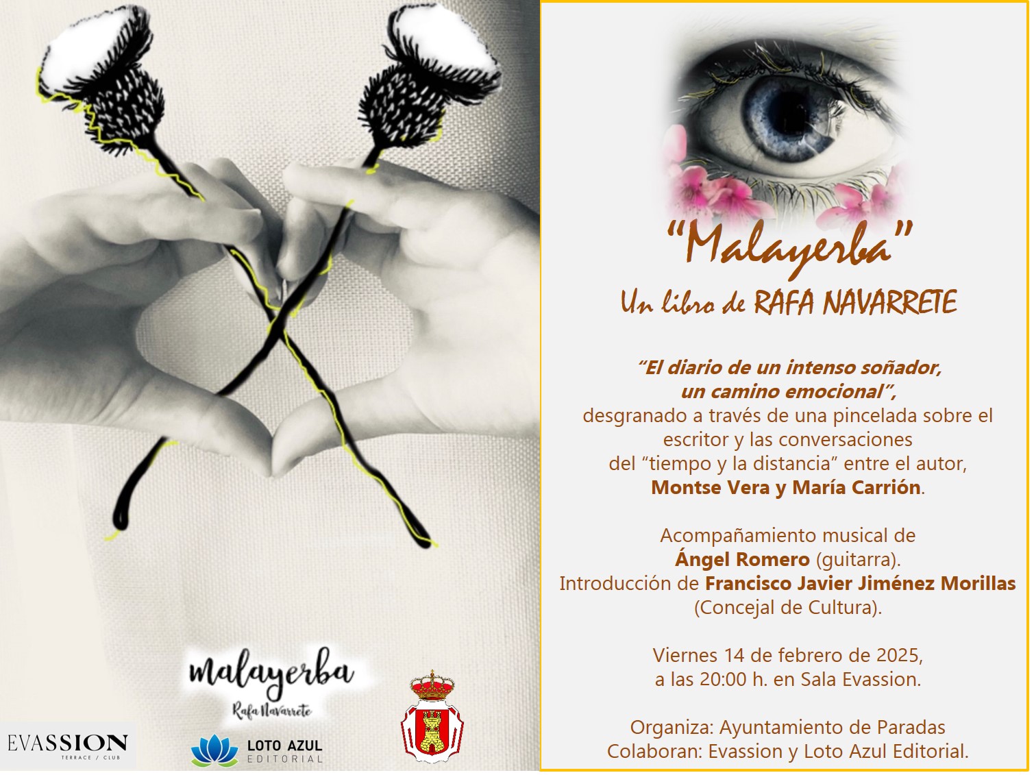 El viernes 14 de febrero tendrá lugar la presentación del nuevo libro de Rafa Navarrete "Malayerba". Será a las 8 de la tarde en el sala Evassion de Paradas.