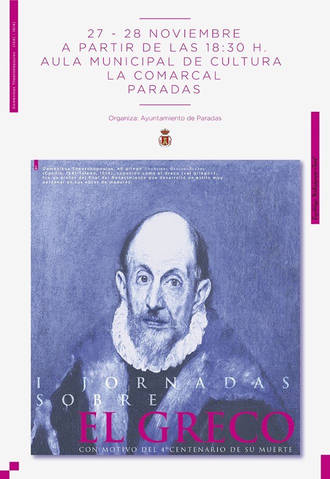 El Área de Cultura del Ayuntamiento de Paradas, ha organizado las I Jornadas sobre El Greco con motivo del 4º centenario de su muerte y teniendo en cuenta que el museo parroquial del Templo de san Eutropio alberga el cuadro “La Magdalena Penitente” una de las obras más importantes del pintor.