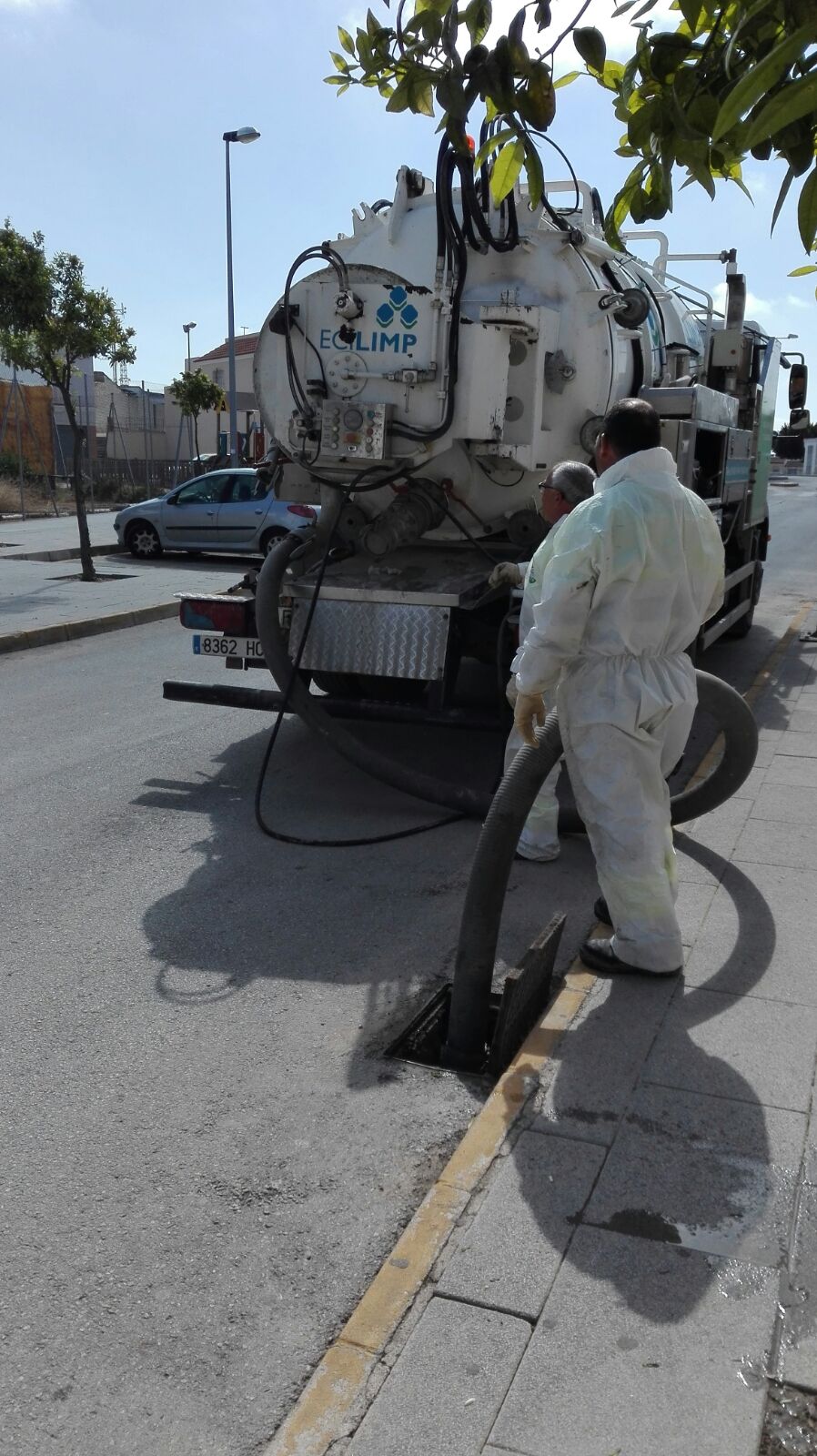 Limpieza de alcantarillas en las calles de Paradas, por parte de la empresa CIAR.