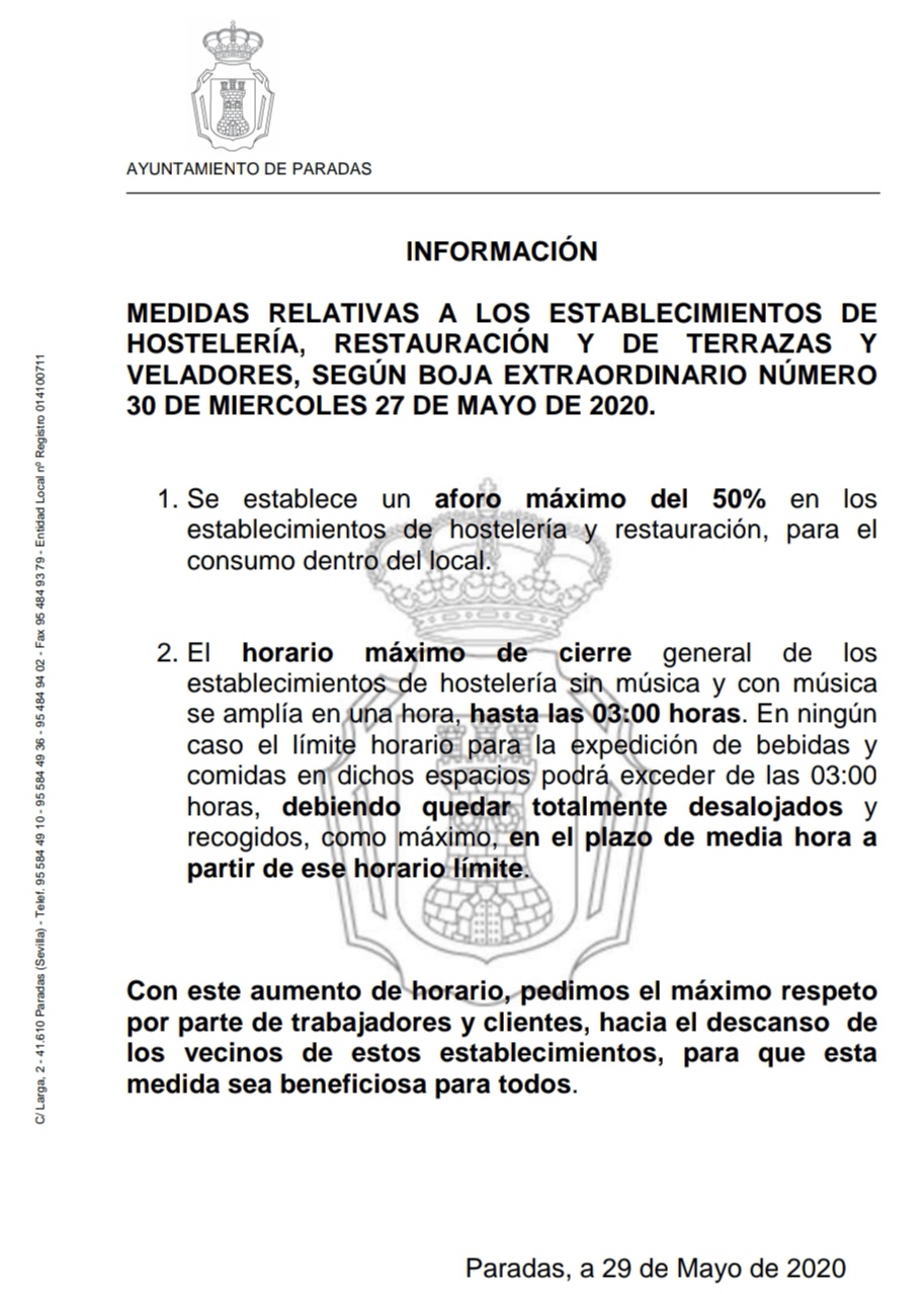 Medidas para los establecimientos de restauación y de terrazas y veladores