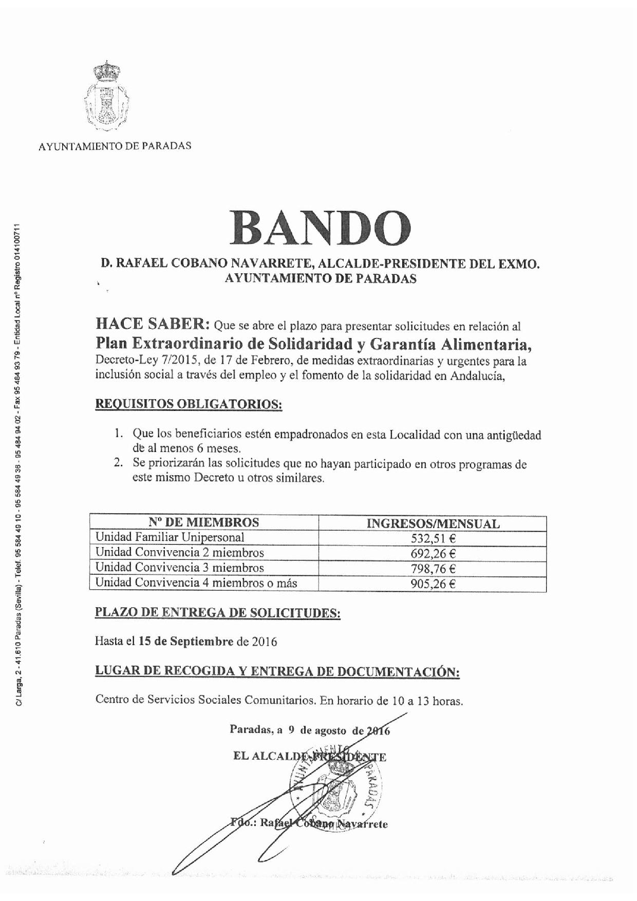 Servicios Sociales Comunitarios. En horario de 10 a 13 horas.