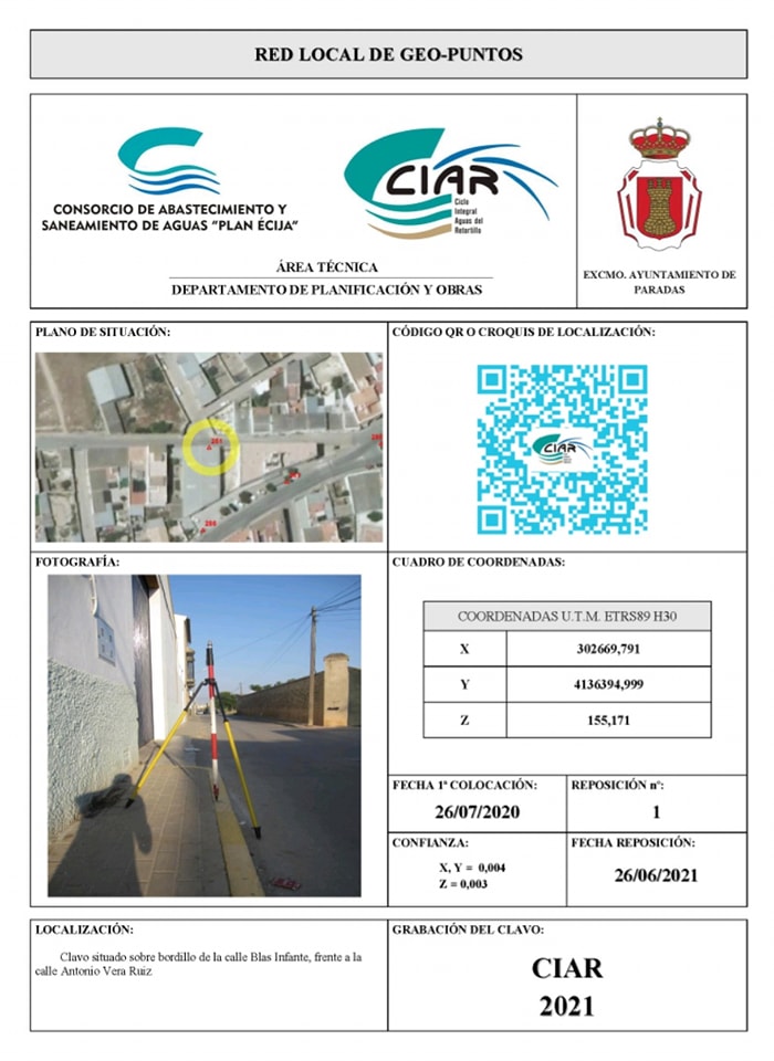 En definitiva, se dota al Municipio de Paradas de una herramienta topográfica para estudio y planificación de redes de alcantarillado así como cualquier otro tipo de trabajo georreferenciado, equiparándose al de Sevilla capital y las grandes ciudades, donde se observa en muchos bordillos de aceras en las esquinas la existencia de estos GEO-PUNTOS.